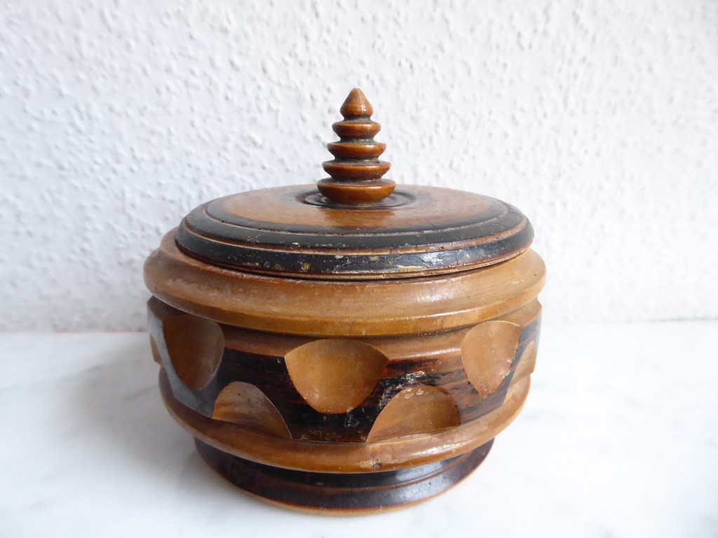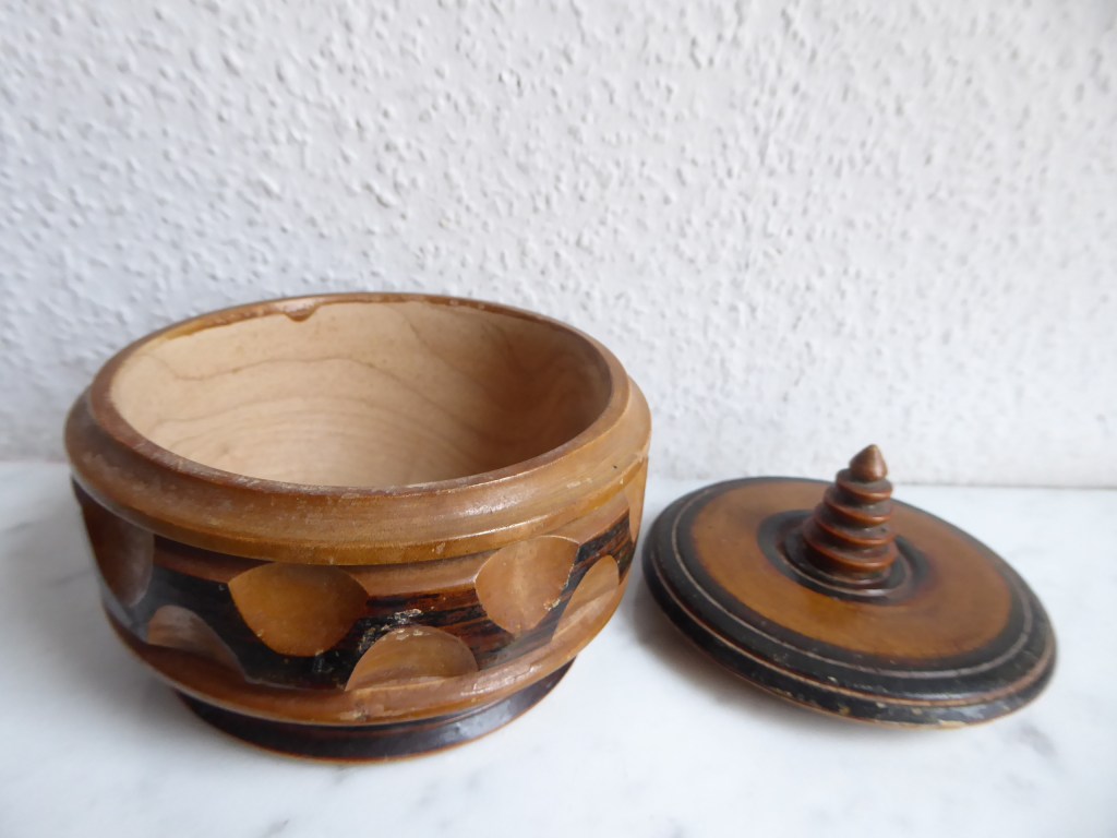 En la cerca del article més vell del “museu”, aquest recipient es nomenat en la factura com a “bombonera”. Comprat al 1941.