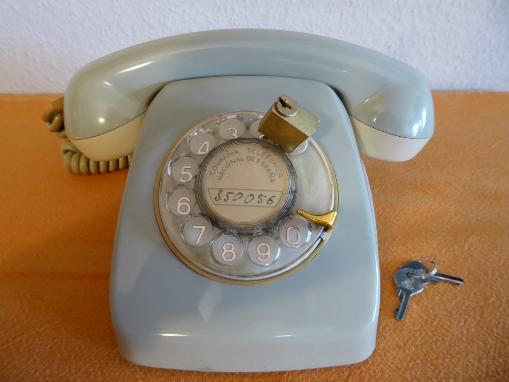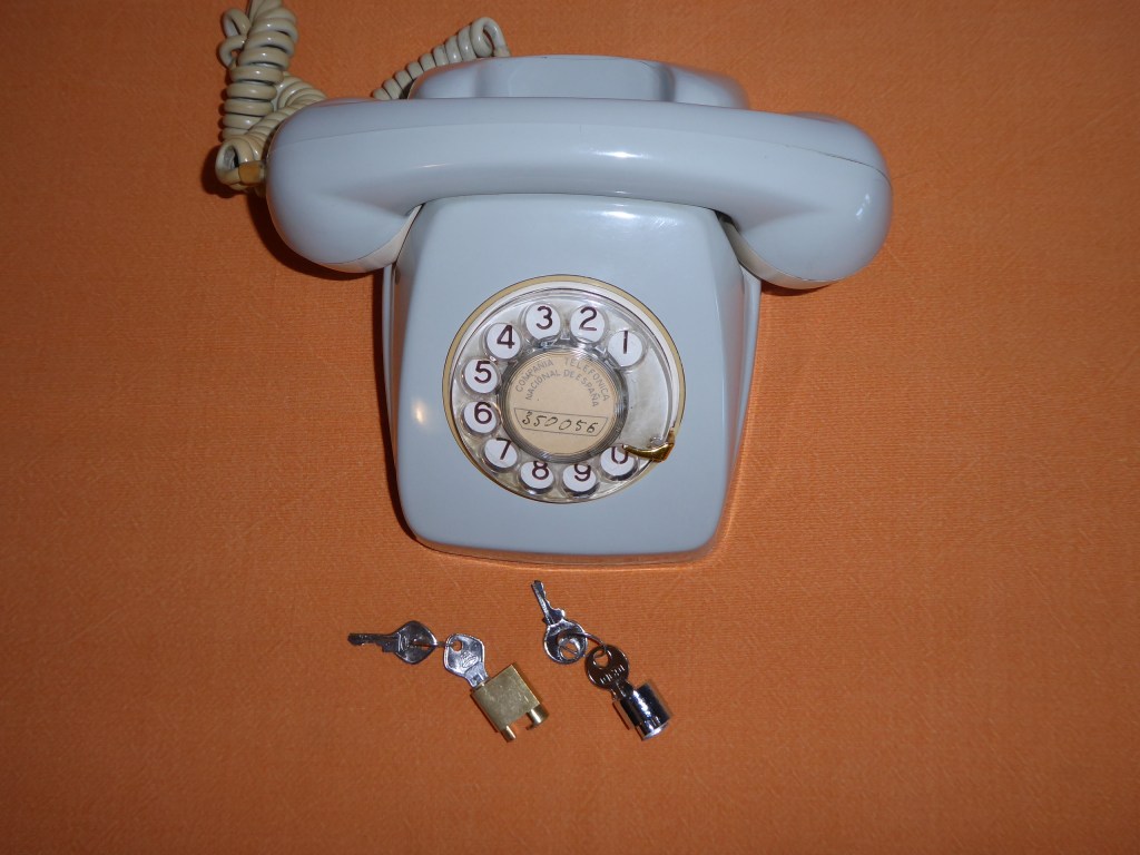 Els “pins” dels telefons analogics eren cadenats o panys com els de la foto. El dorat es “Made in Taiwán”, pero el cromat es del la marca AGA, fabrica de tancaments i panys de Mondragón.