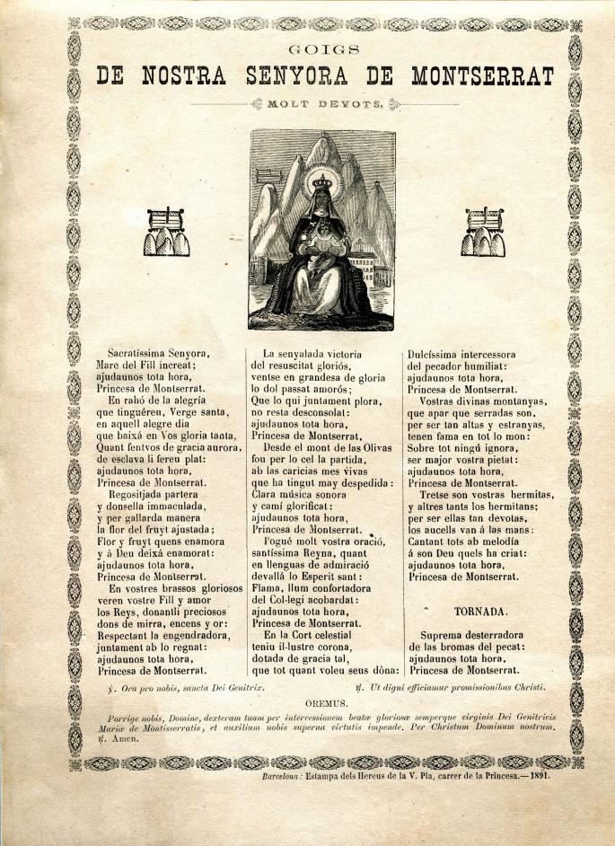 Dintre de la categoria de “articles de museu” caldrà fer un apartat de articles de “pietat”. Els goigs amb català, i els “gozos o coplas” amb castellà en son una mostra. Tots estaven comprats a “Hereus de la V. Pla”. Aquest es el que porta l’any mes vell: 1891.