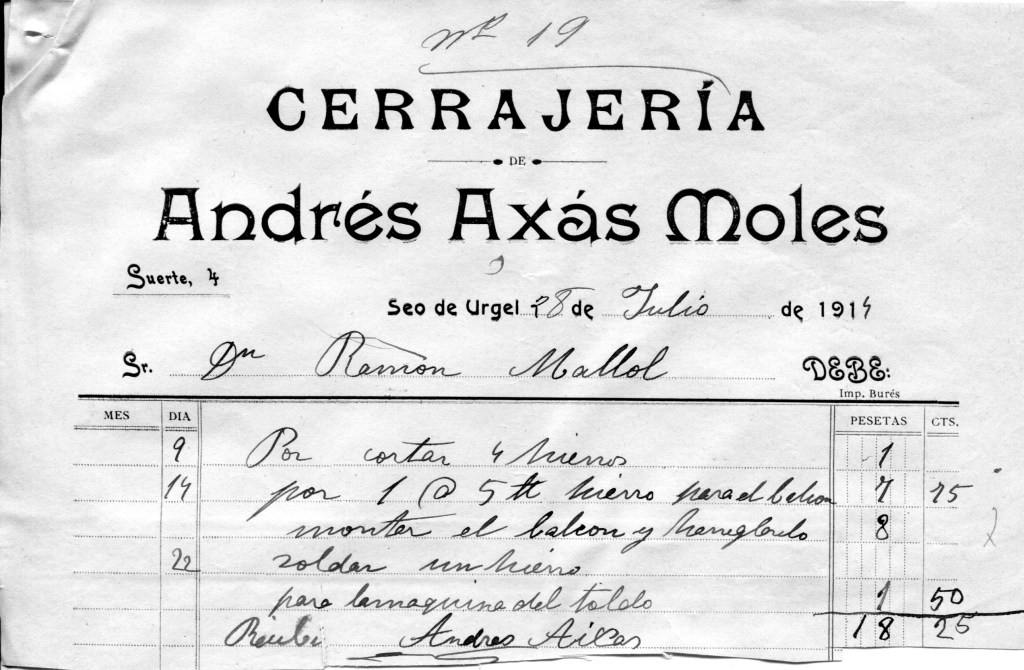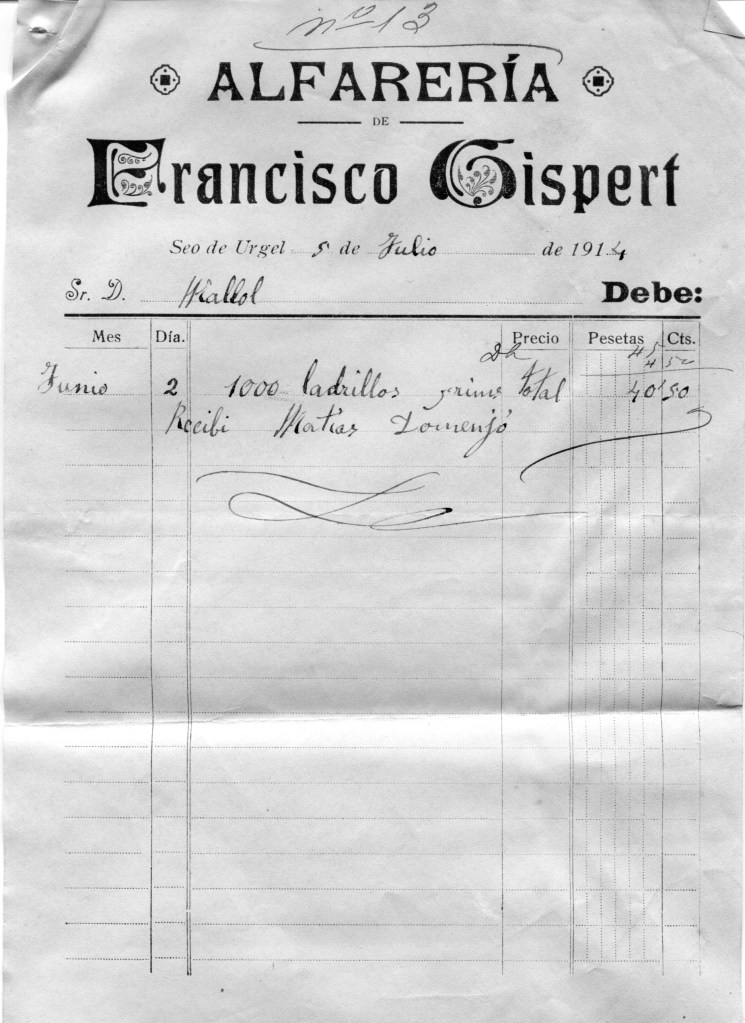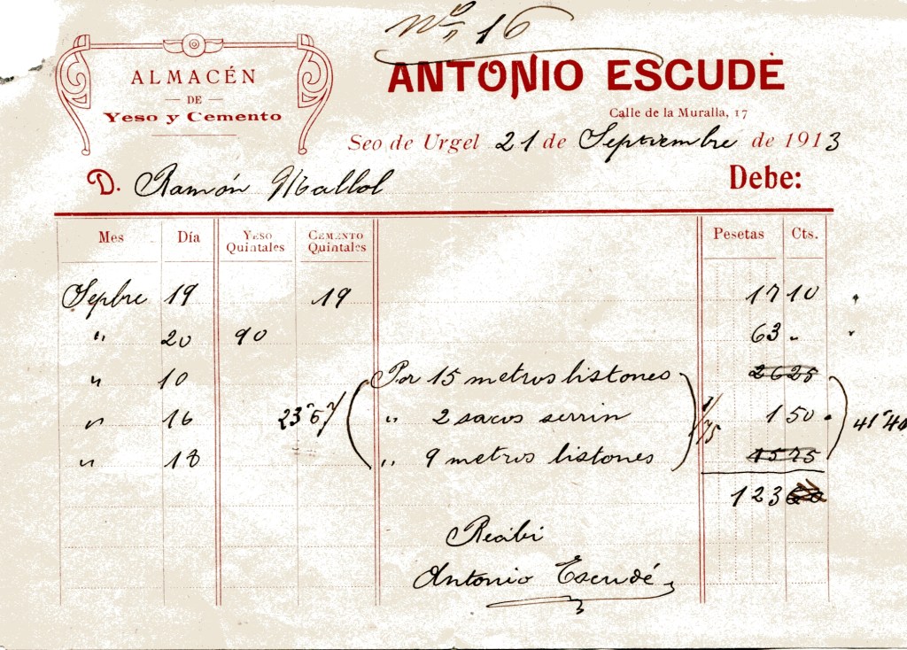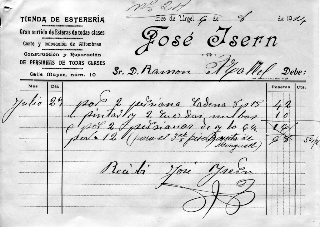 En els papers del avi es guarden les factures i el resum de despeses de les obres fetes als pisos de sobre de la ferreteria al carrer Major 34, anys 1913 i 1914.