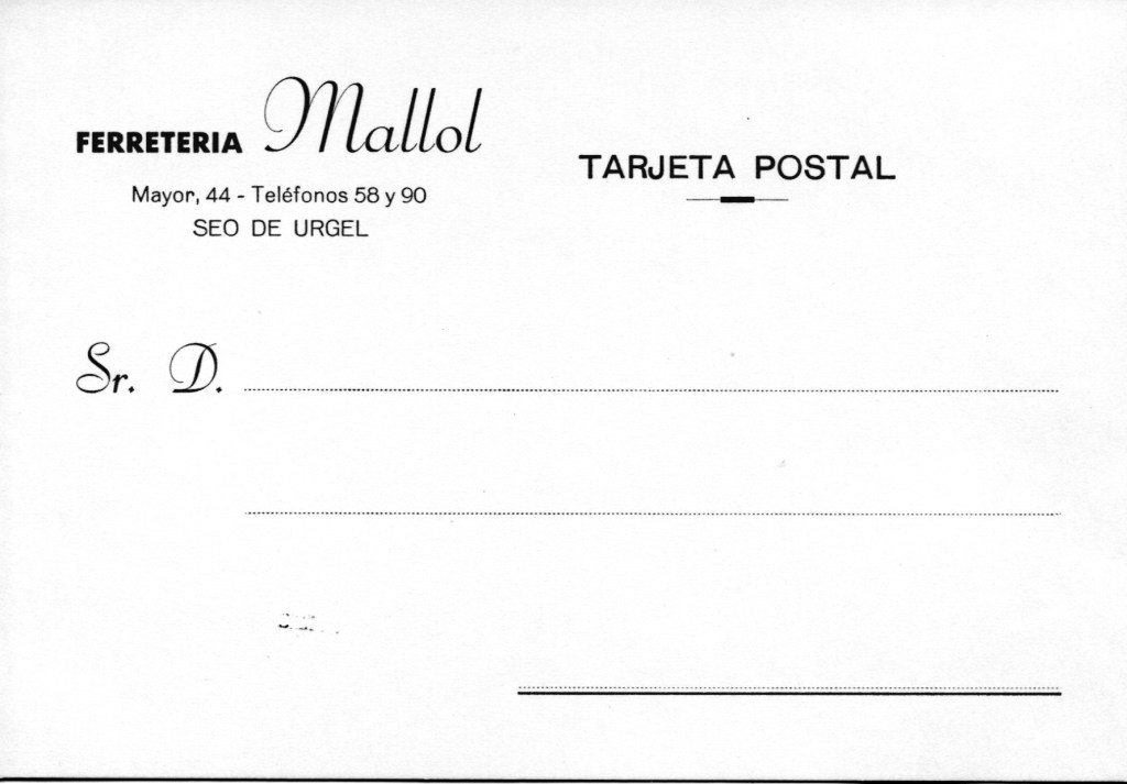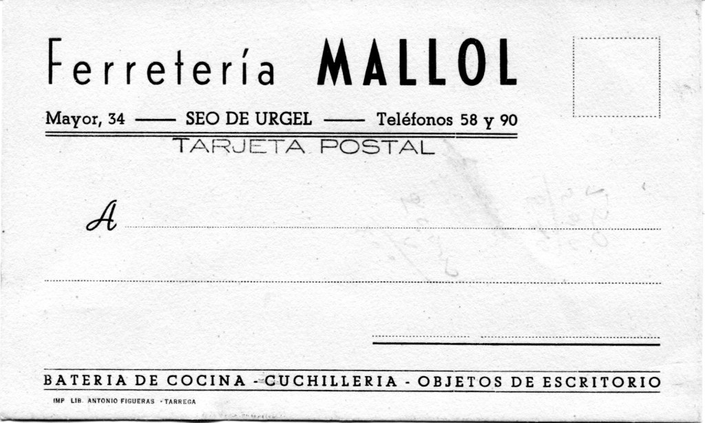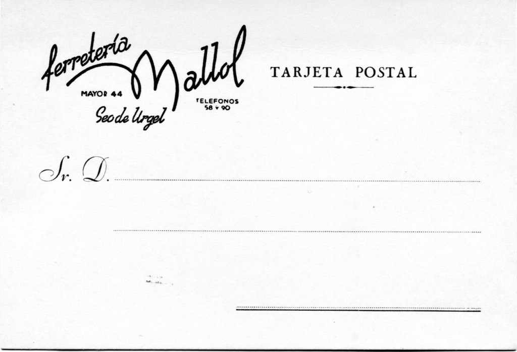 No tinc dades per ubicar-les en els anys que van ser impresses. Pels telefons , la grafia de “Seo de Urgel” i el número del carrer, es podrien datar ans ls anys 40. 50 i 60 del segle passat