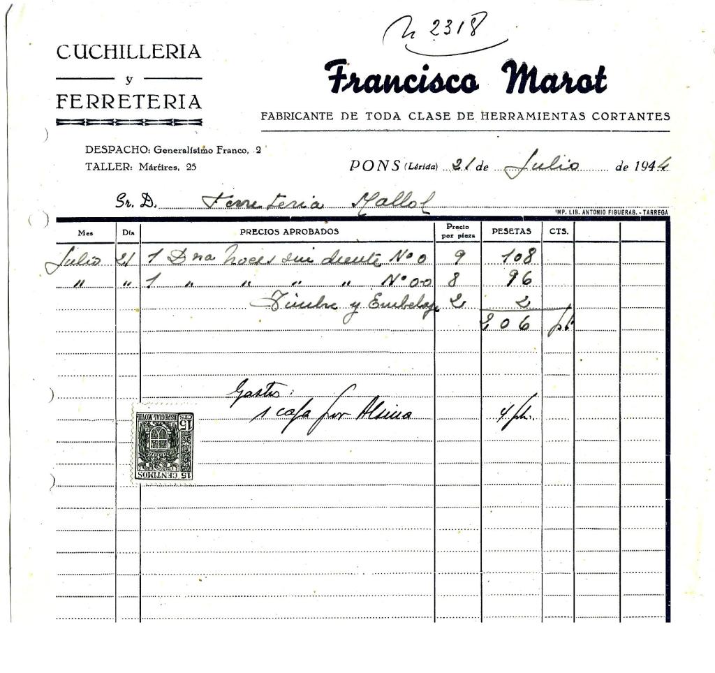 No puc adjuntar cap foto. Dues factures, dos generacions. Desconec si encara fabriquen eines de tall, la seva qualitat era llegendaria.