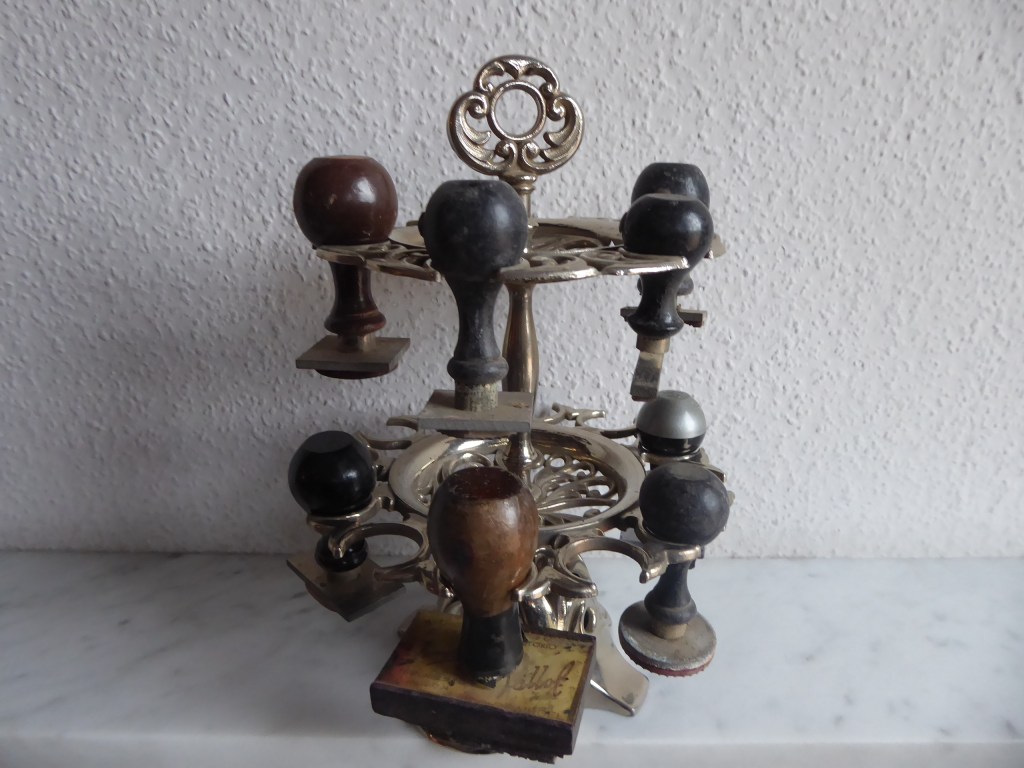 De l’apartat dels objectes d’escritori. La caixa d’antics segells de la ferreteria ha servit per ilustrar i per obrir un altre capitol dels diferents segells segons l’època.
