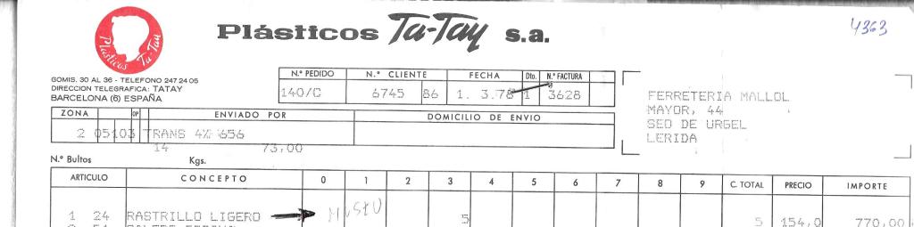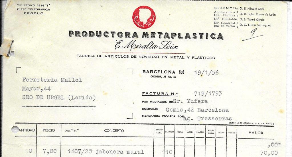 Evolució de les capçaleres de les factures de una marca molt estimada per la nostra ferreteria. Fabrica entre altres: articles de parament de la llar i jardineria en plàstic.