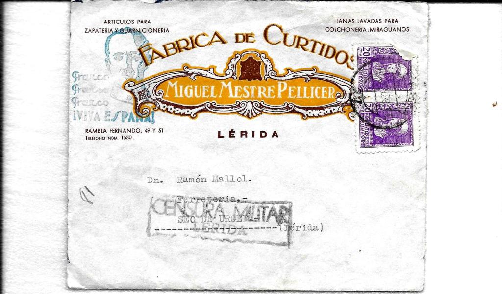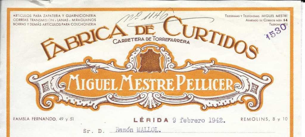 La factura es de 1942 i el sobre de 1939.