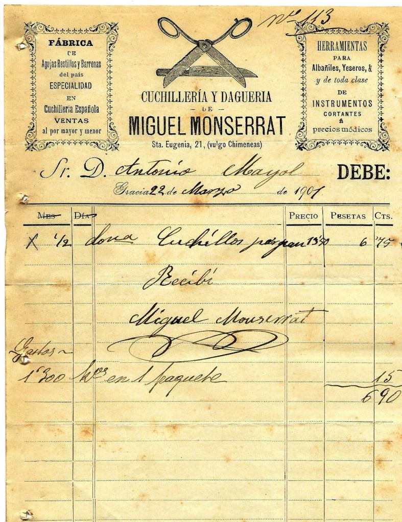 CUCHILLERIA Y DAGUERIA de MIGUEL MONSERRAT, 1901 23 Novembre, 2021 per santiagomallol, posted in factures Compártelo: Feu clic per compartir a X (S'obre en una nova finestra) X Feu clic per compartir al Facebook (S'obre en una nova finestra) Facebook M'agrada S'està carregant... Relacionats