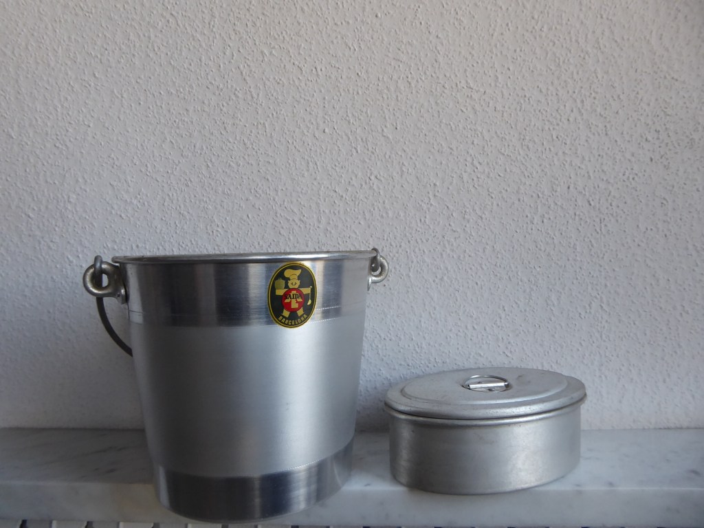Un logotip ben interesant i dues peces del “museu”: un galleda per gel i una carmanyola