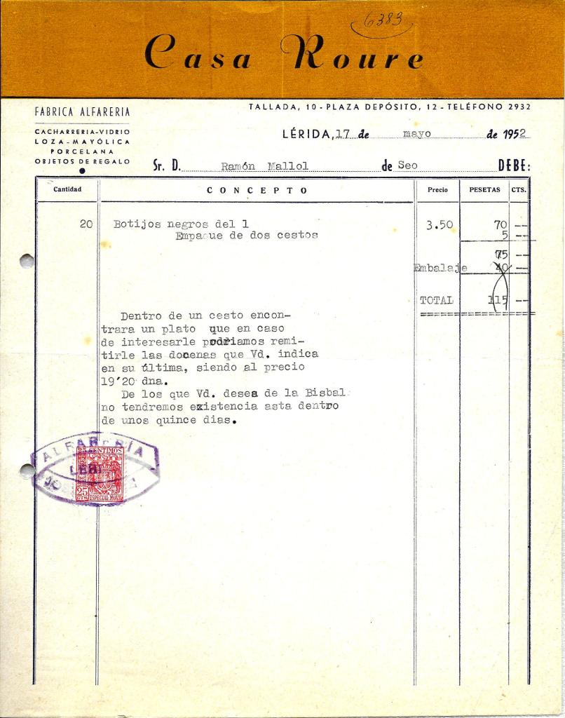 CASA ROURE. 1952. “LÉRIDA” 19 Setembre, 202319 Setembre, 2023 per santiagomallol, posted in factures “BOTIJOS NEGROS” : CÀNTIRS Compártelo: Feu clic per compartir a X (S'obre en una nova finestra) X Feu clic per compartir al Facebook (S'obre en una nova finestra) Facebook M'agrada S'està carregant... Relacionats
