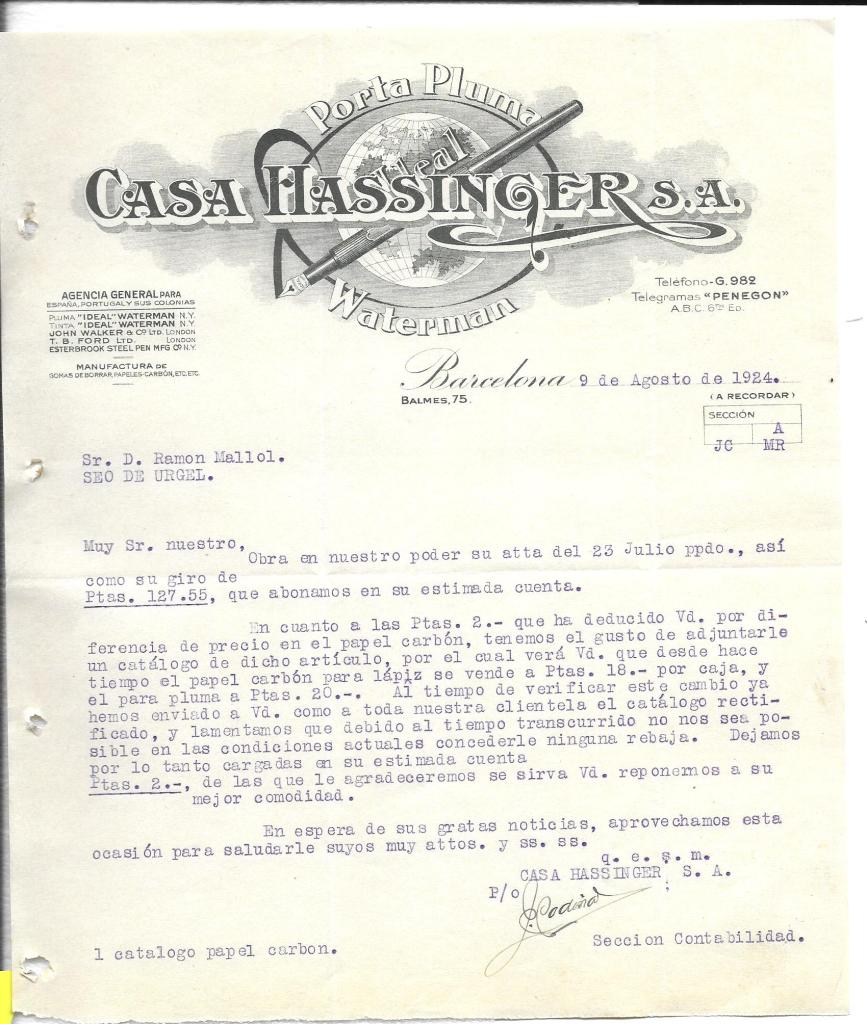 CASA HASSINGER,S.A. 1924 14 Mai, 2024 per santiagomallol, posted in factures Un altre del proveïdors de fa cent anys. Compártelo: Feu clic per compartir a X (S'obre en una nova finestra) X Feu clic per compartir al Facebook (S'obre en una nova finestra) Facebook M'agrada S'està carregant... Relacionats