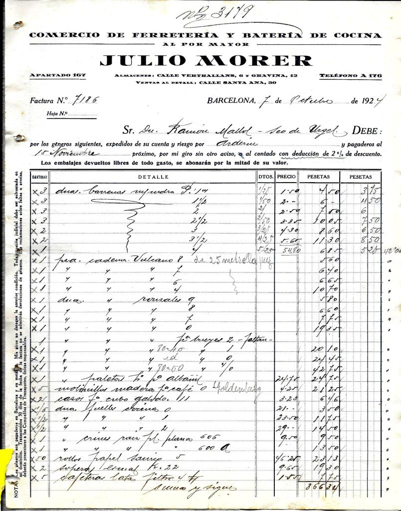 Un altre magatzem de ferreteria de fa cent anys. Al carrer de Vertrallans es on va residí el Ramon Mallol Cirera en els seus anys d’aprenentatge a Barcelona (1895)a la Ferreteria de Arturo Inglada.