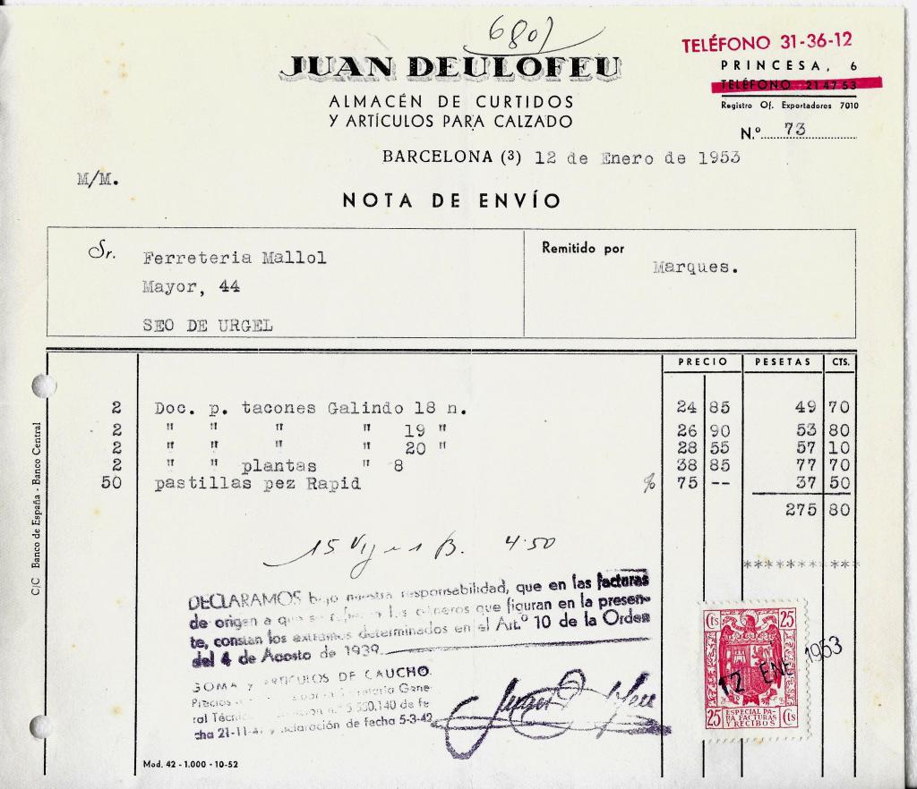 JUAN DEULOFEU.1953 19 Març, 202519 Març, 2025 per santiagomallol, posted in Articles de museu, factures Tacones y plantas GALINDO Compártelo: Feu clic per compartir a X (S'obre en una nova finestra) X Feu clic per compartir al Facebook (S'obre en una nova finestra) Facebook M'agrada S'està carregant... Relacionats